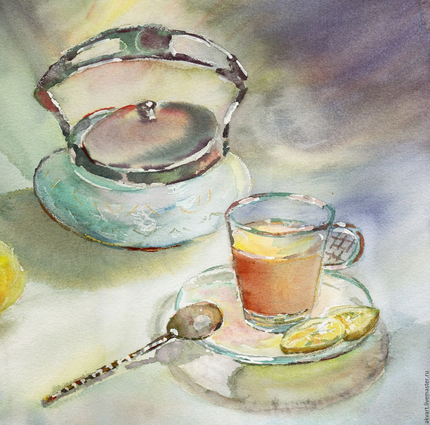 ![Чайник акварелью]()
