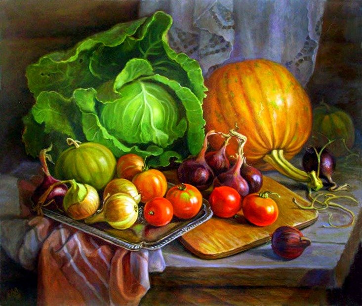 ![Овощной натюрморт живопись]()