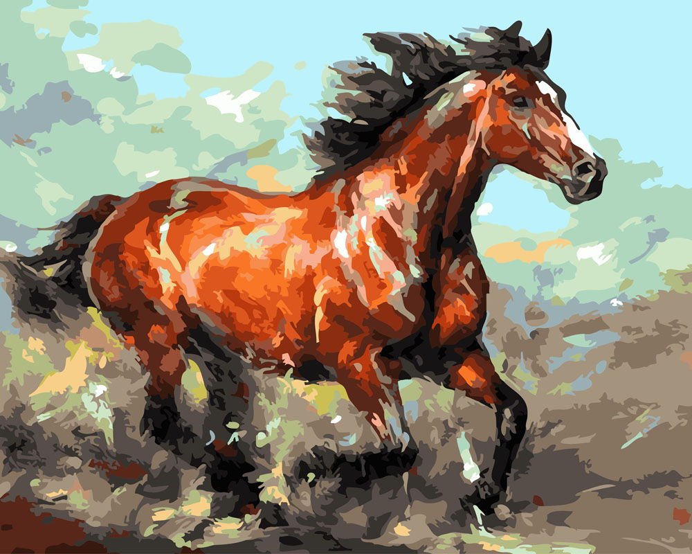 Конь красками