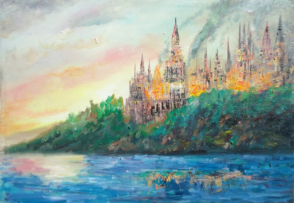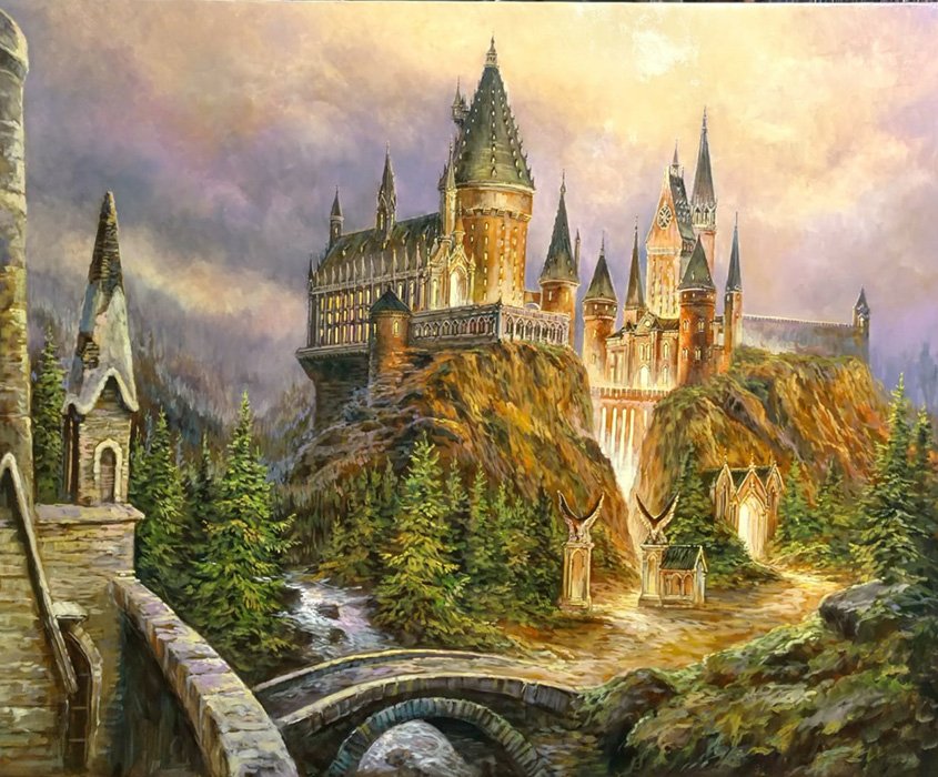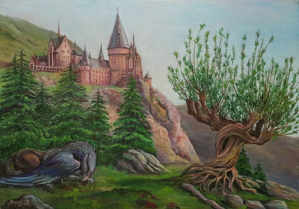 ![Пейзаж маслом Хогвартс]()