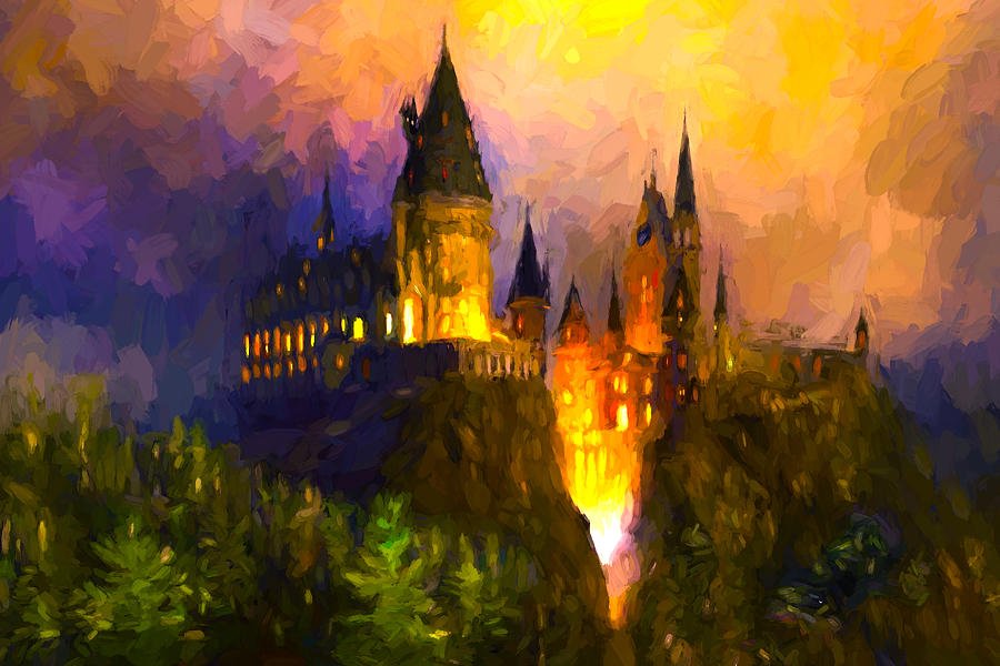 ![Картина маслом Гарри Поттер Хогвартс замок]()
