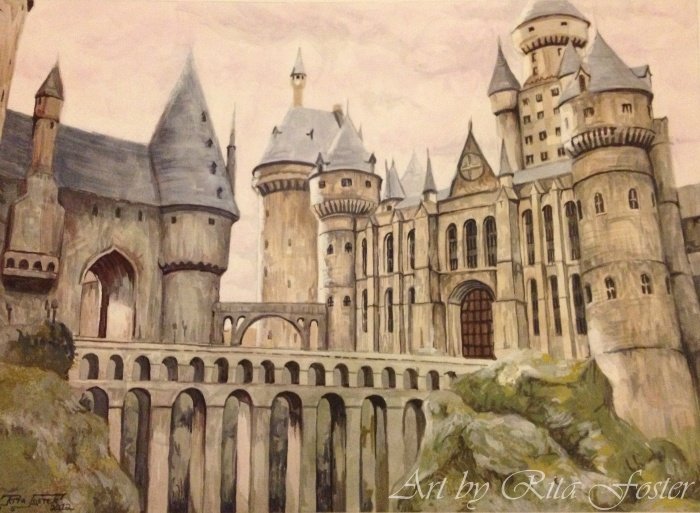 ![Замок акварель Хогвартс]()