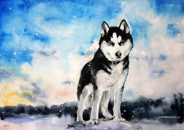 ![Хаски акварелью]()