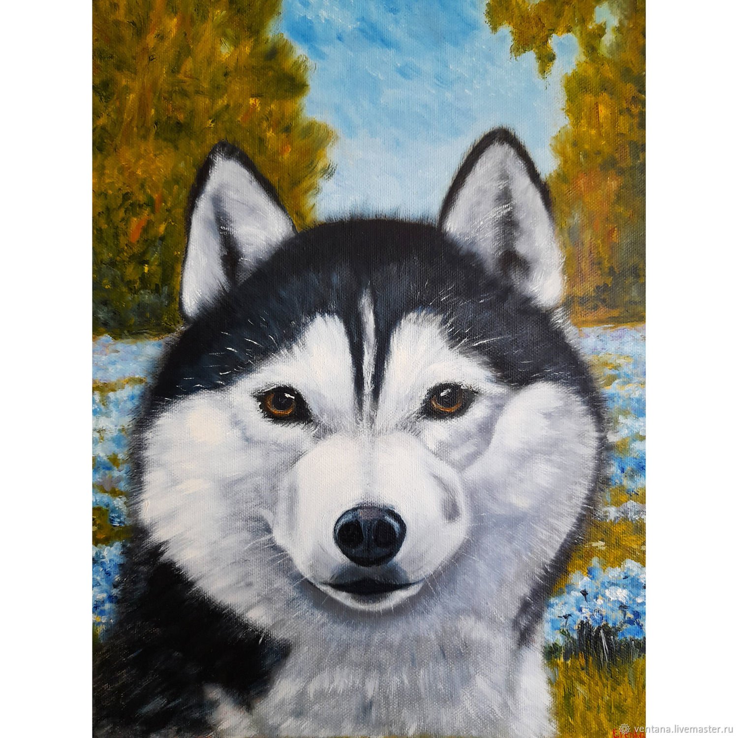 ![Хаски картина маслом]()