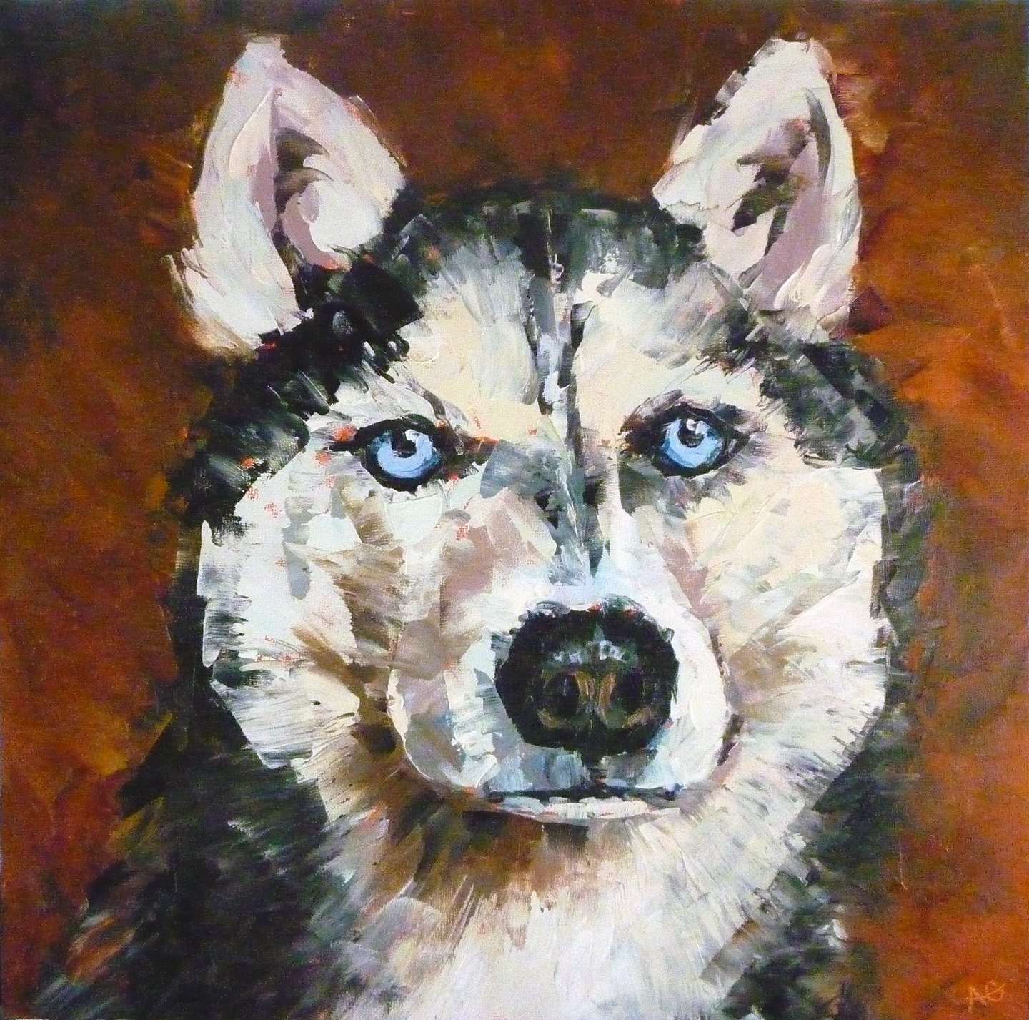 ![Хаски маслом на холсте]()