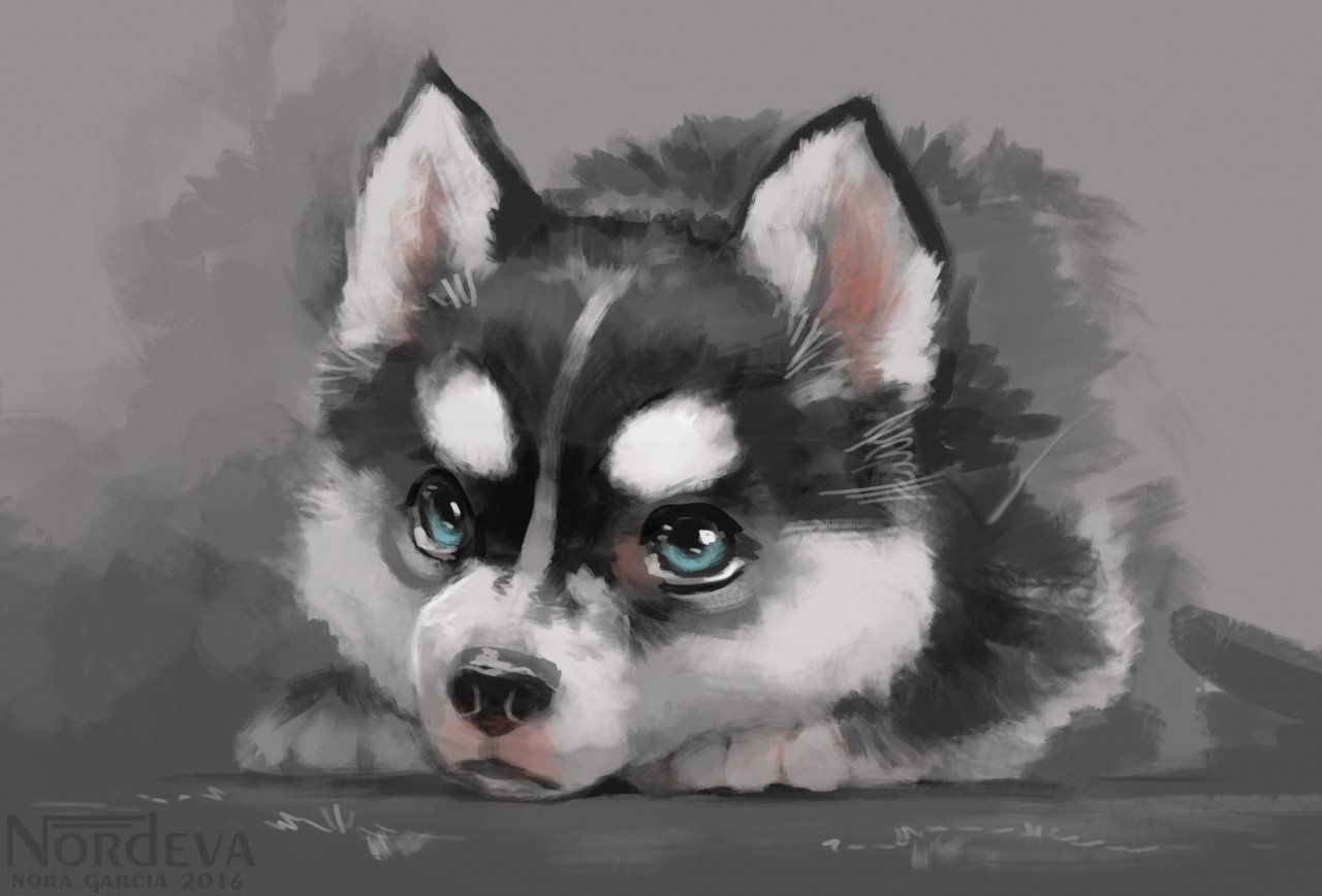 ![Щенок хаски арт]()