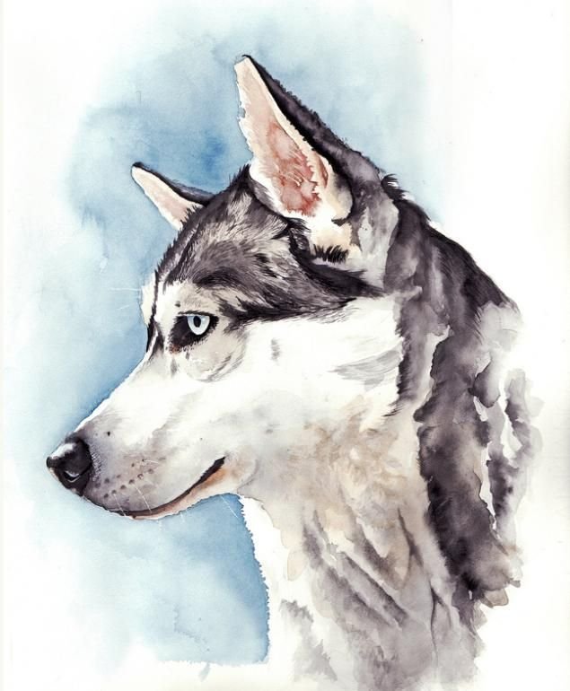 ![Хаски портрет акварелью]()