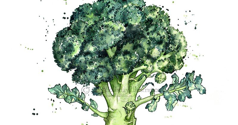 Брокколи рисунок акварелью