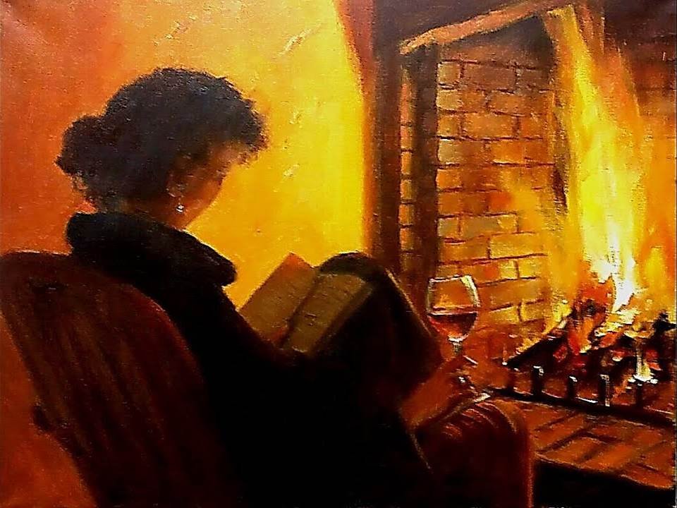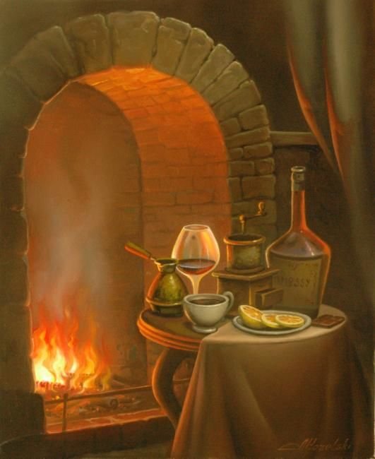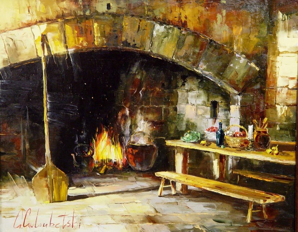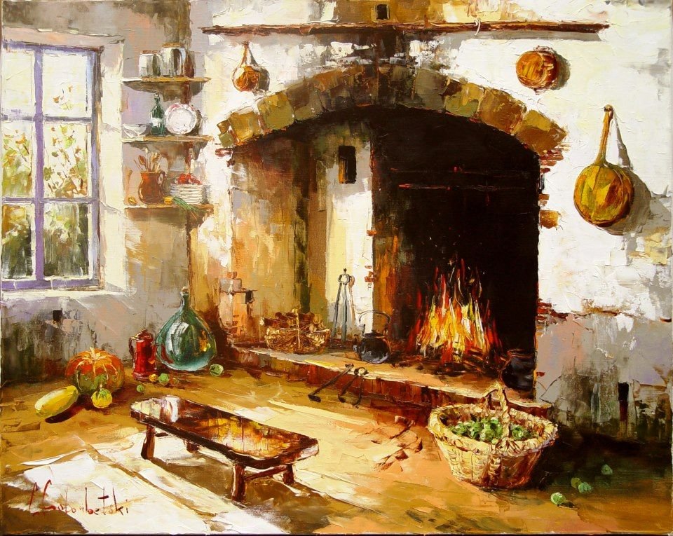 ![Горящий очаг живопись]()