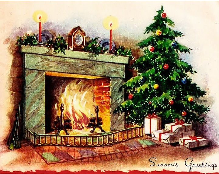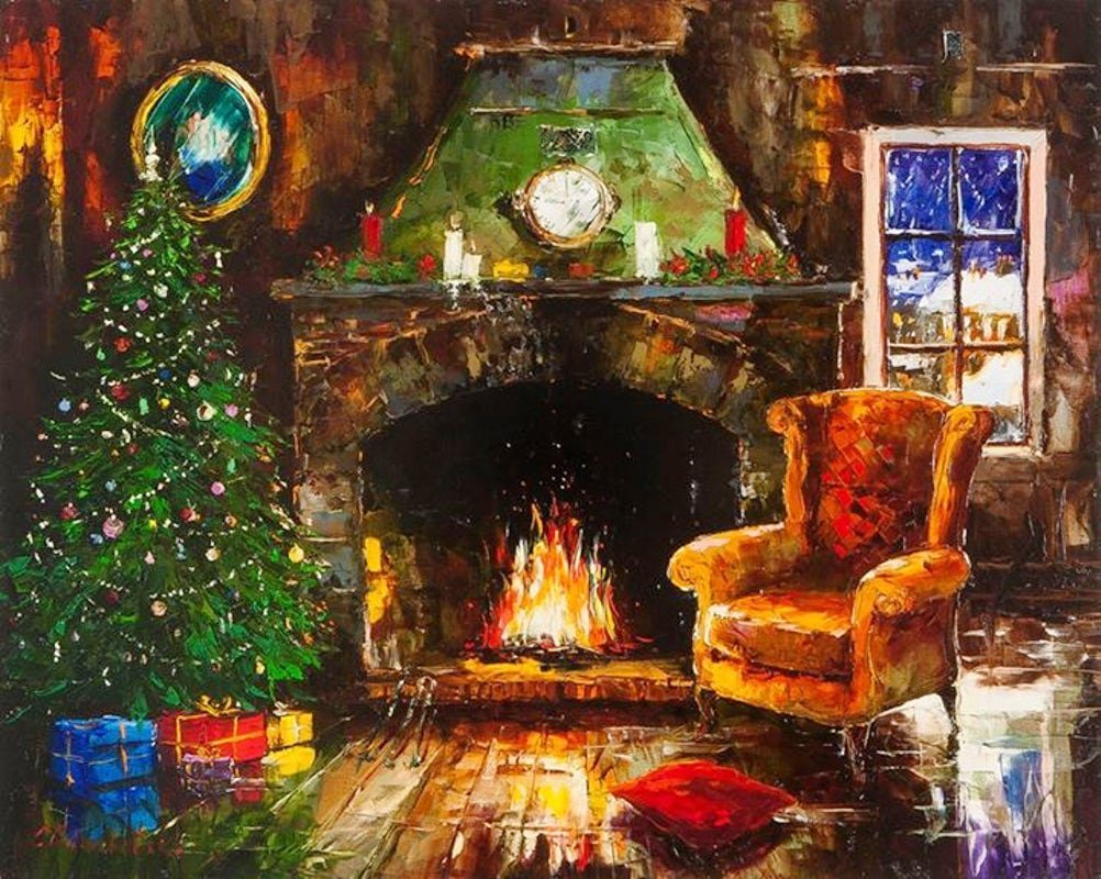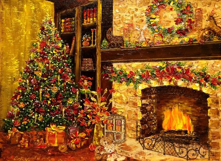 ![Новогодний камин живопись]()