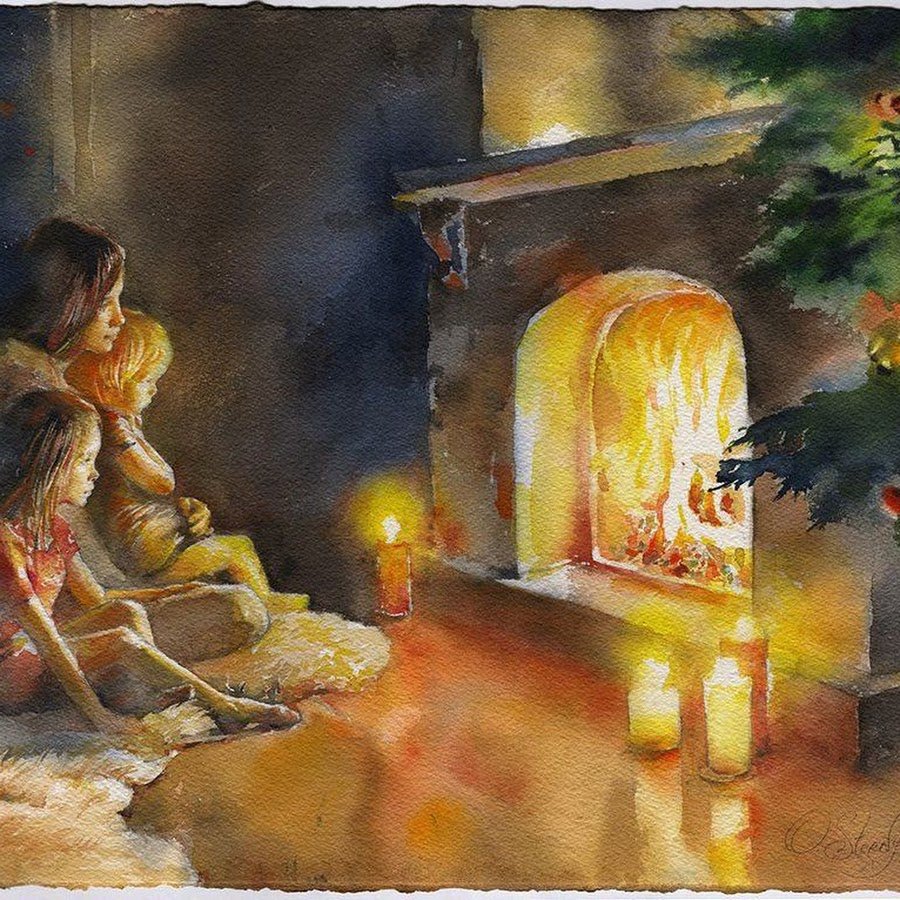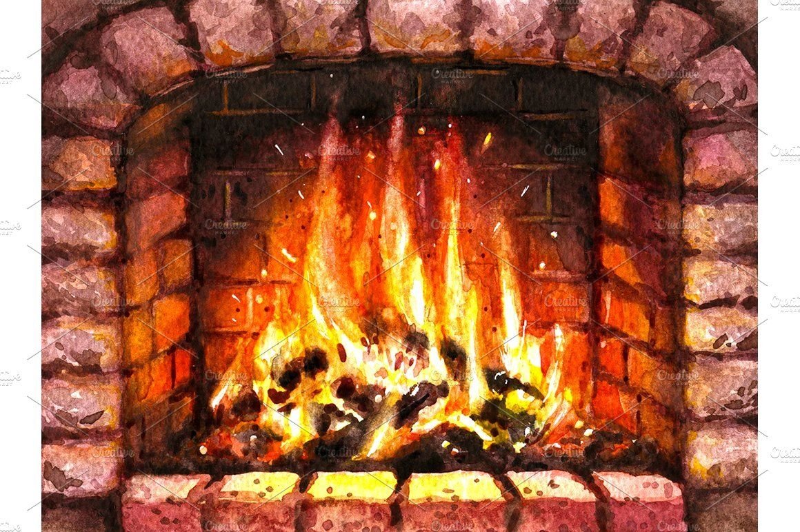 ![Камин акварель]()