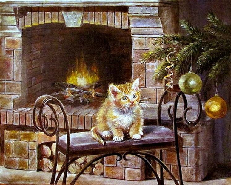 ![Уют камин кот]()