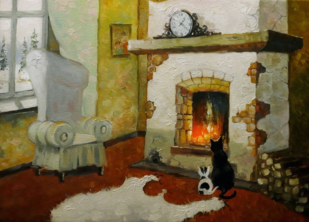 Камин картина маслом