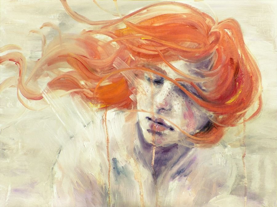 ![Рыжеволосая девушка картина]()