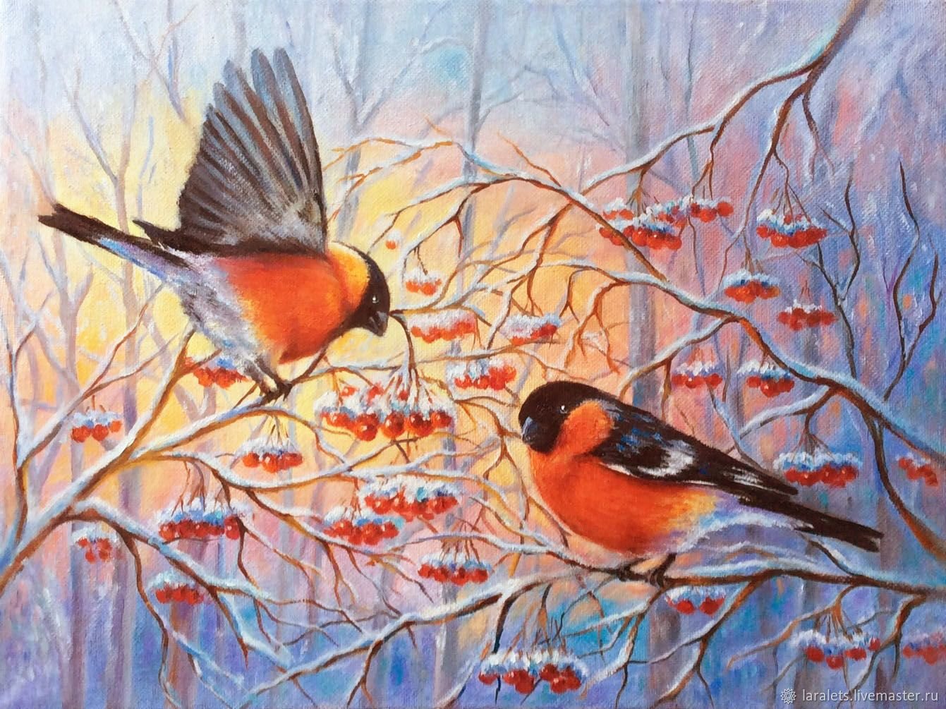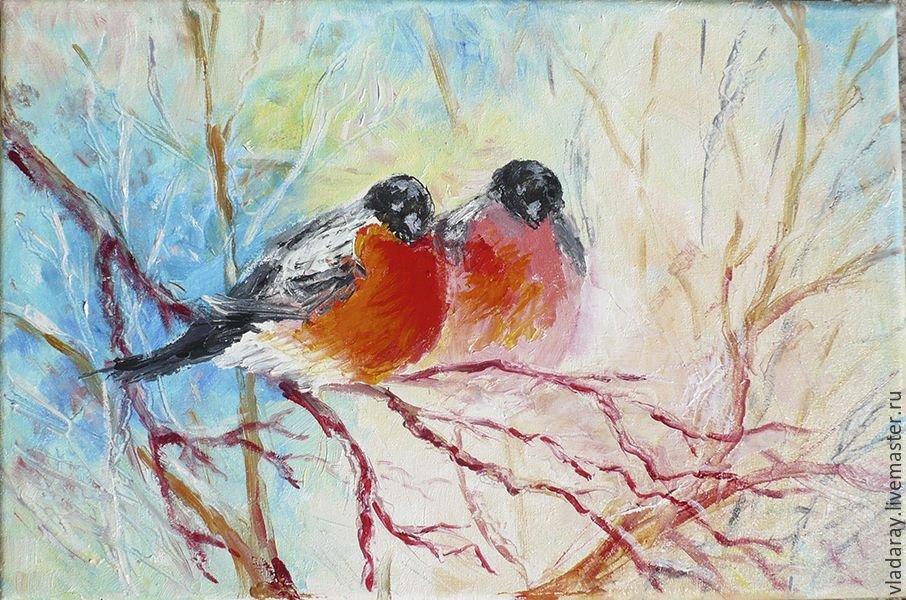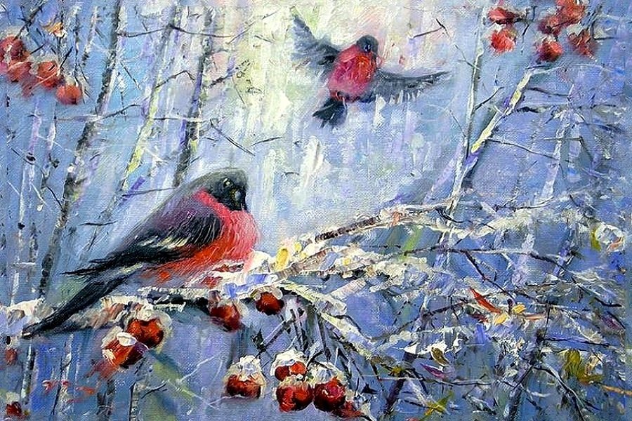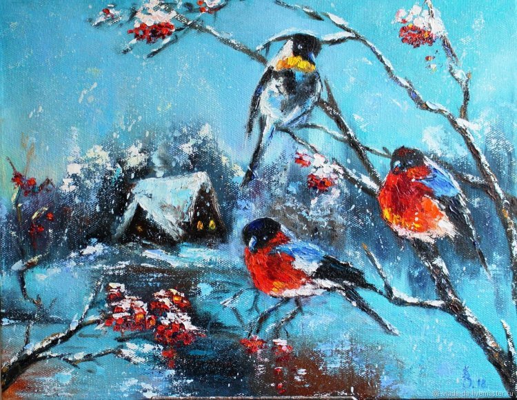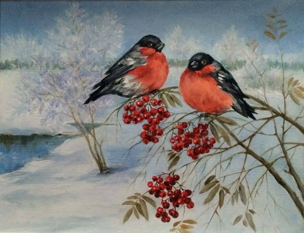 ![Снегири живопись маслом]()