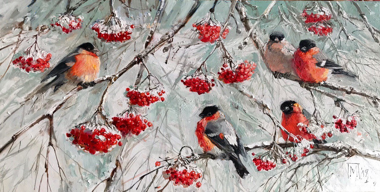 ![Снегири маслом Ольга Базанова]()