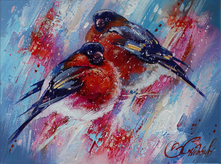 Снегири живопись маслом