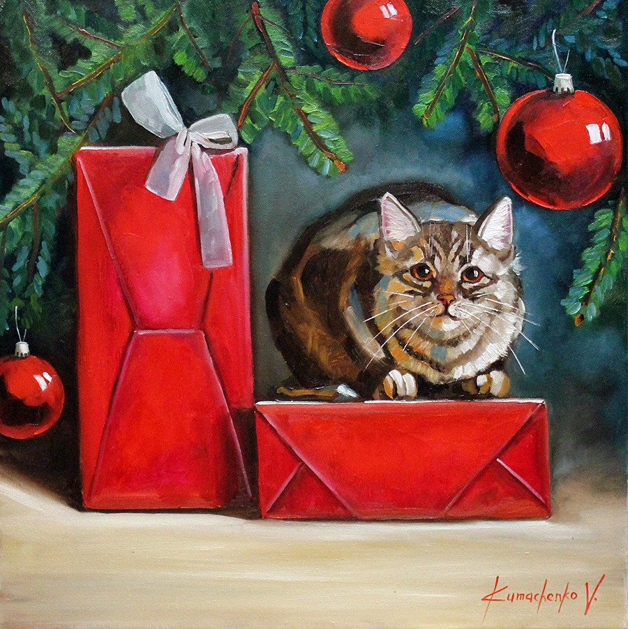 ![Новогодний кот живопись]()