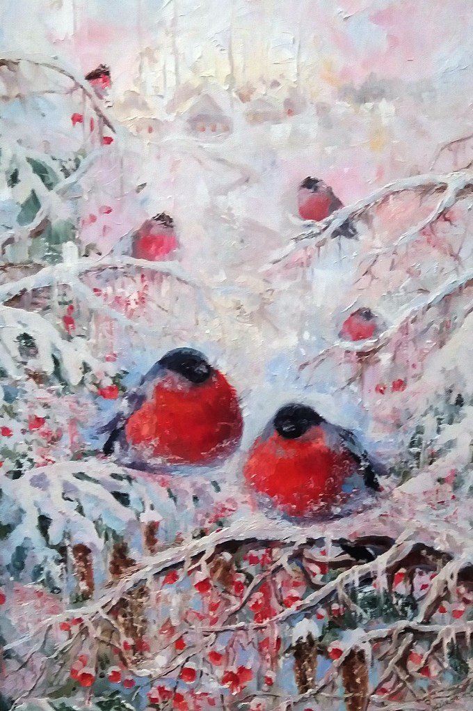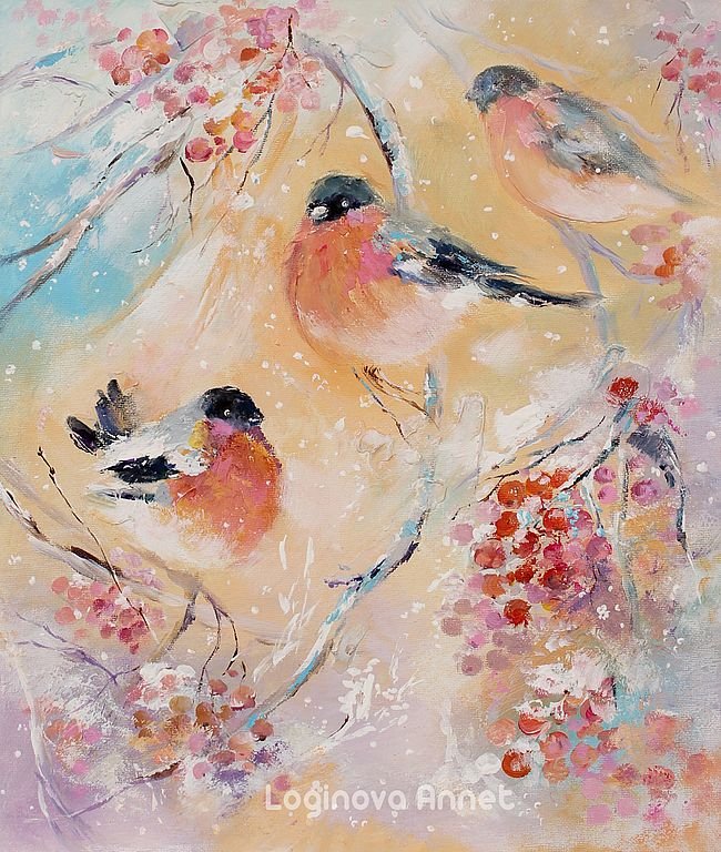 ![Снегири живопись маслом]()