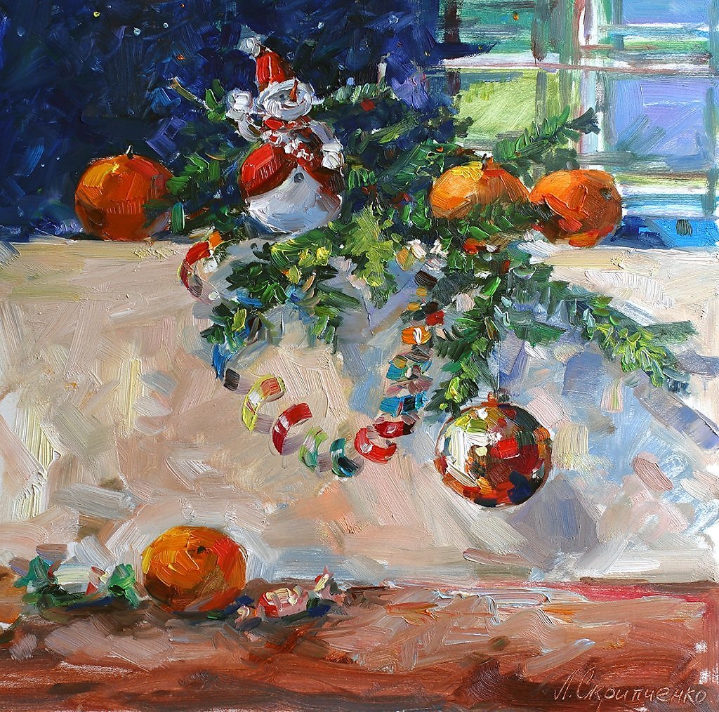 ![Новогодний натюрморт живопись]()