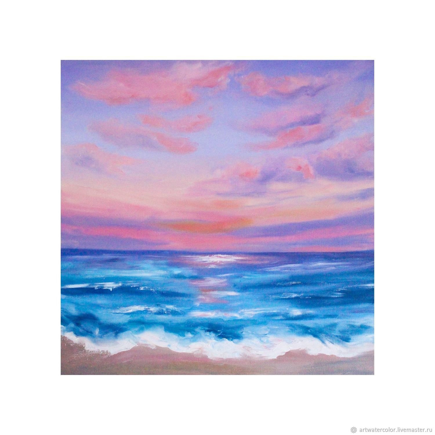 ![Картина морской пейзаж в розовых тонах]()