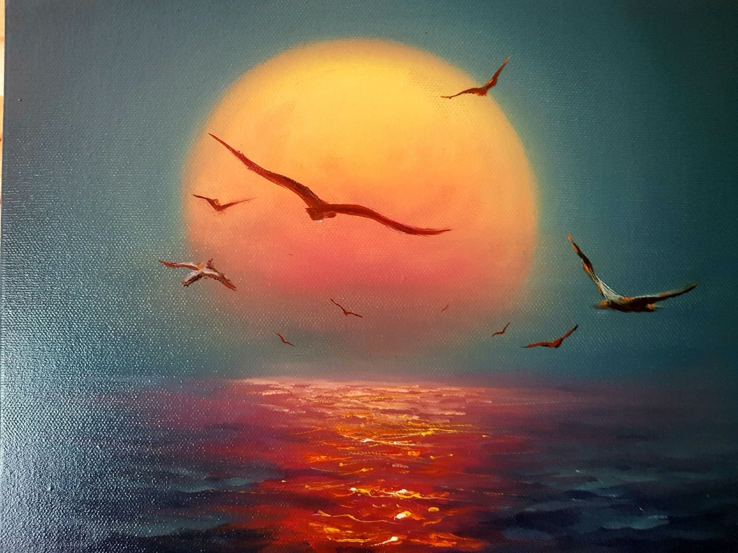 Закат масляными красками