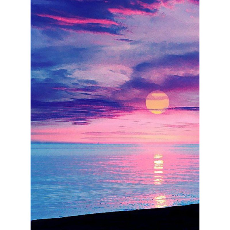 Розовый закат на море акрилом