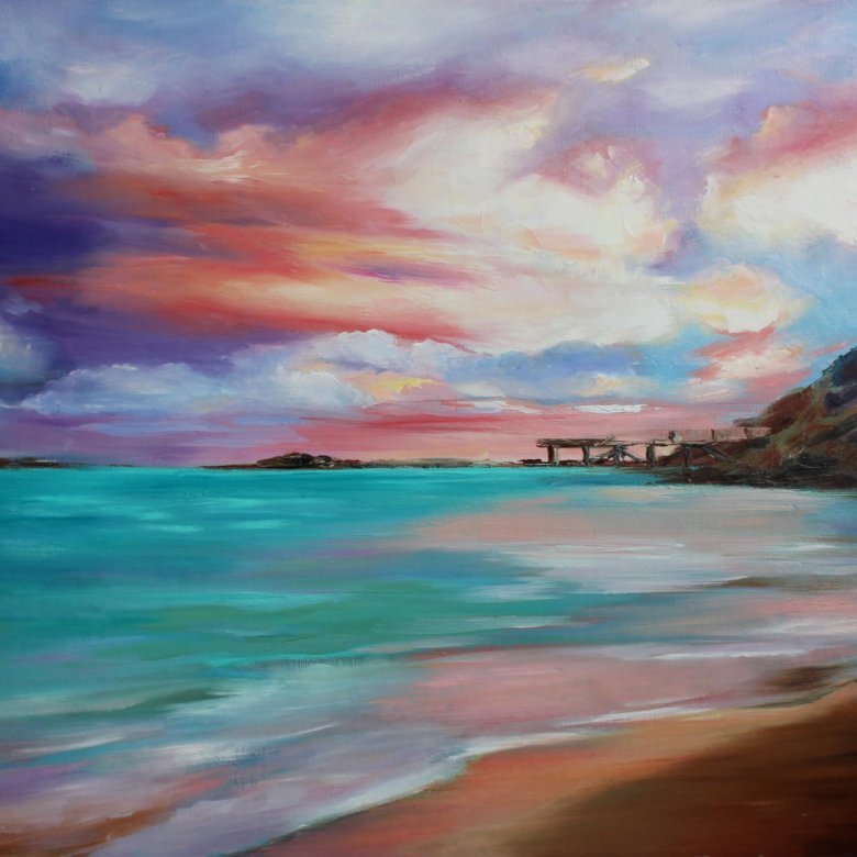 ![Розовый закат на море акрилом]()
