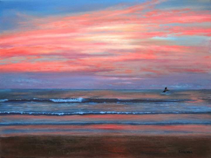 ![Розовый закат живопись]()