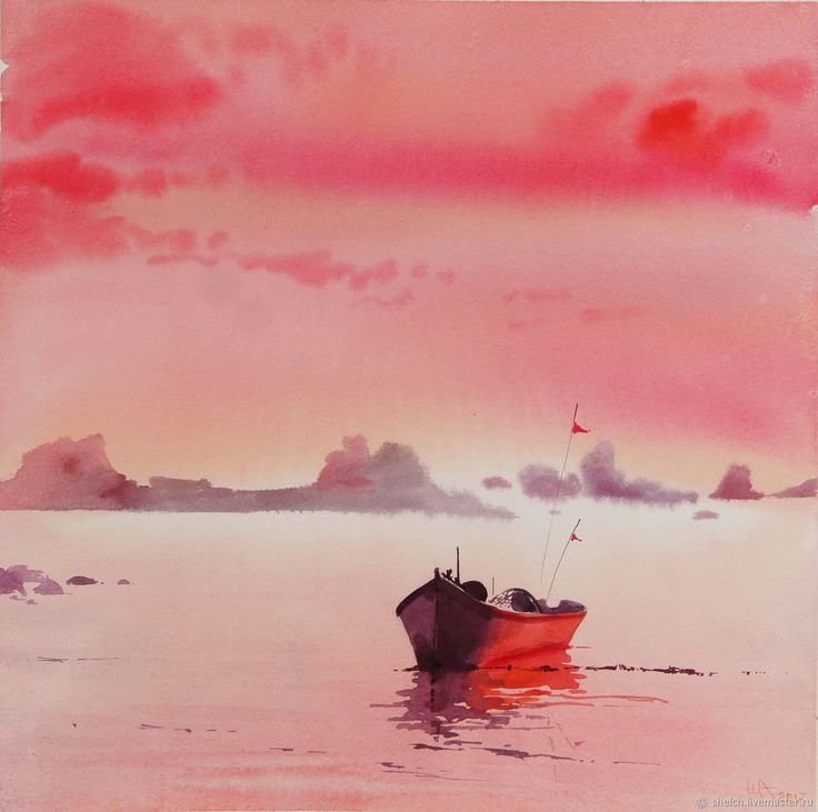 ![Закат акварелью]()
