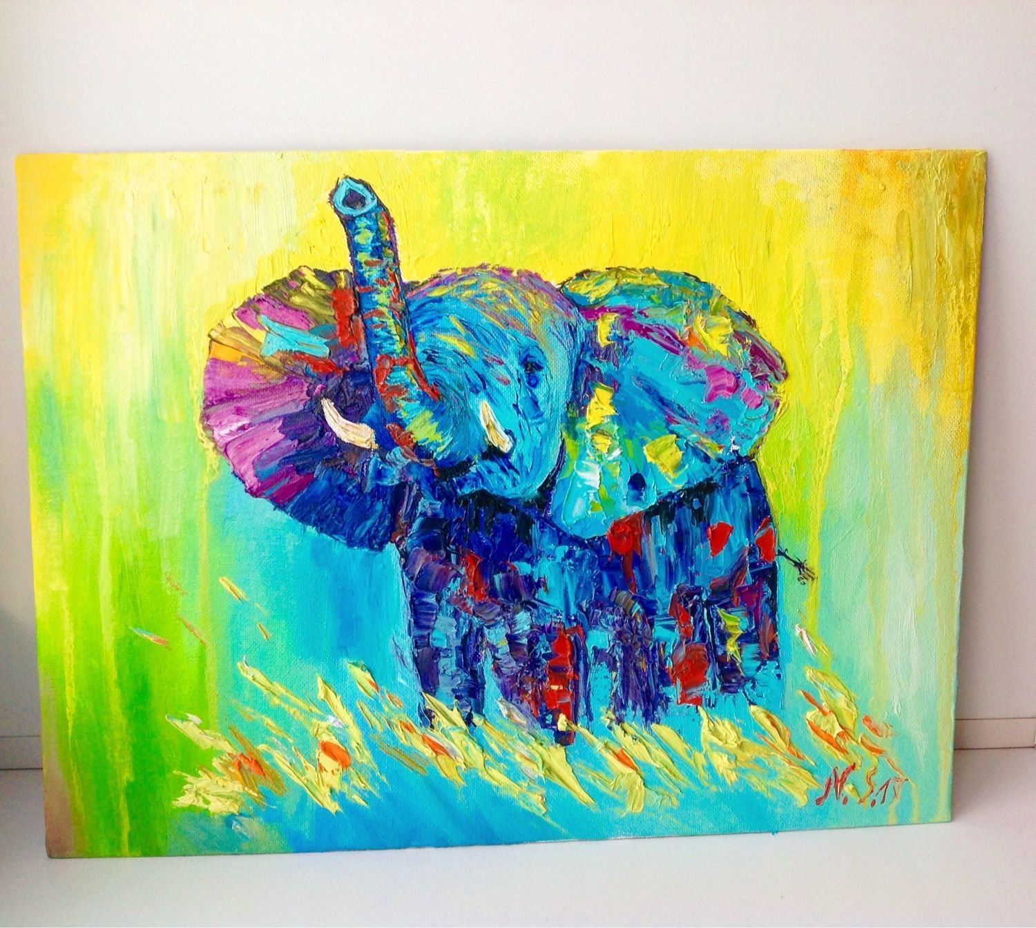 ![Слон акрилом на холсте]()