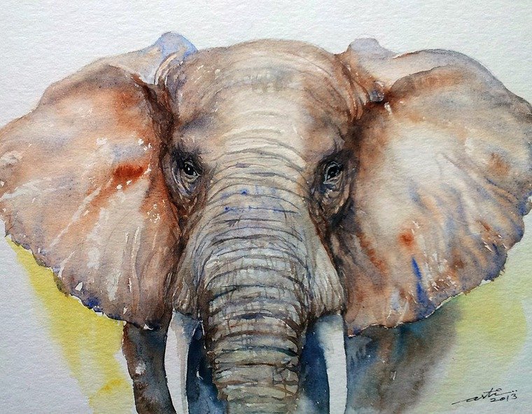 ![Слон акварелью]()