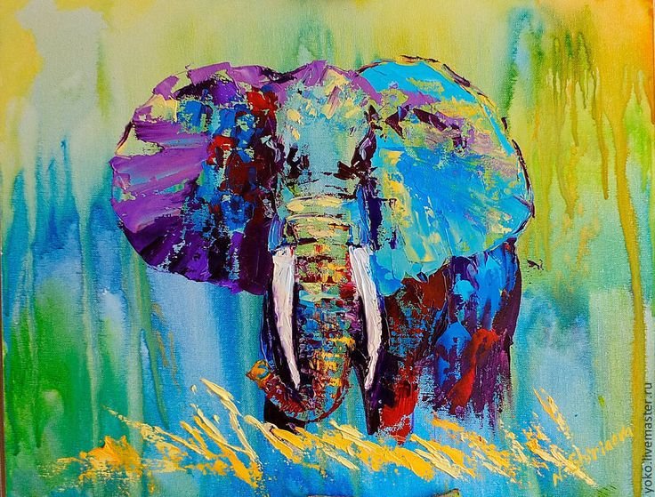 ![Слон живопись акрил]()
