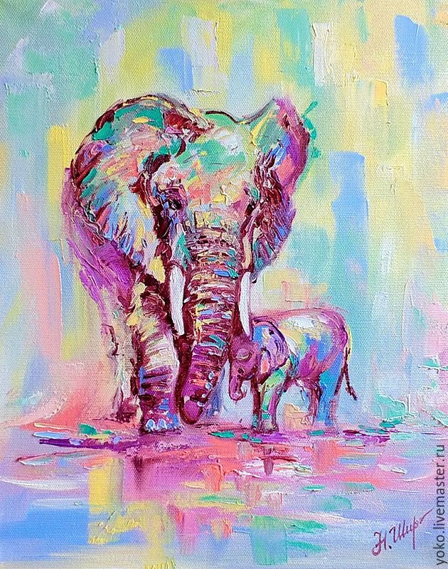 ![Слоны в живописи маслом]()