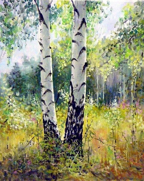 ![Пейзажи березы река художницы Шарыгиной Ирины]()