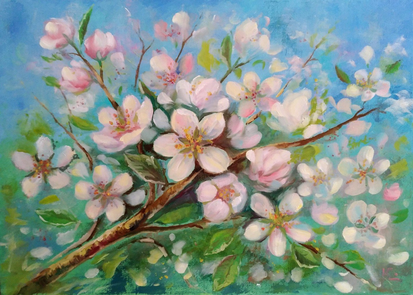 Яблоня цветет живопись