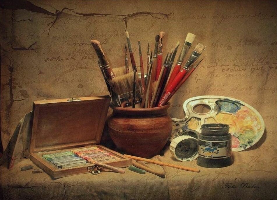 ![Натюрморт с красками и кистями]()