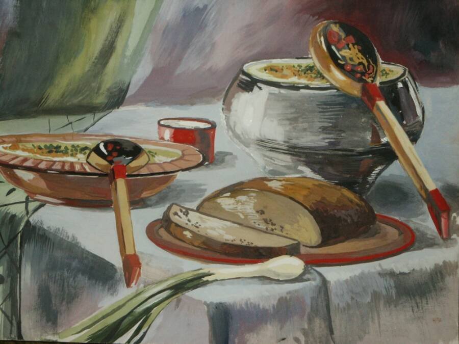 ![Елена Шумакова художник натюрморты с селедкой]()