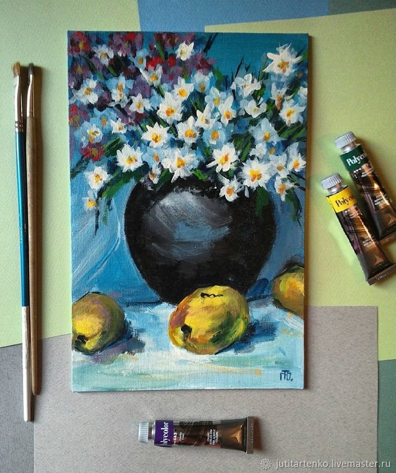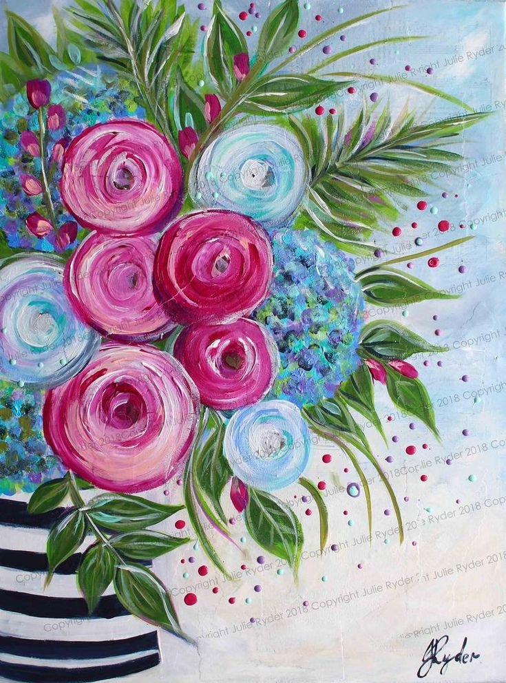 ![Цветы акрилом на холсте]()