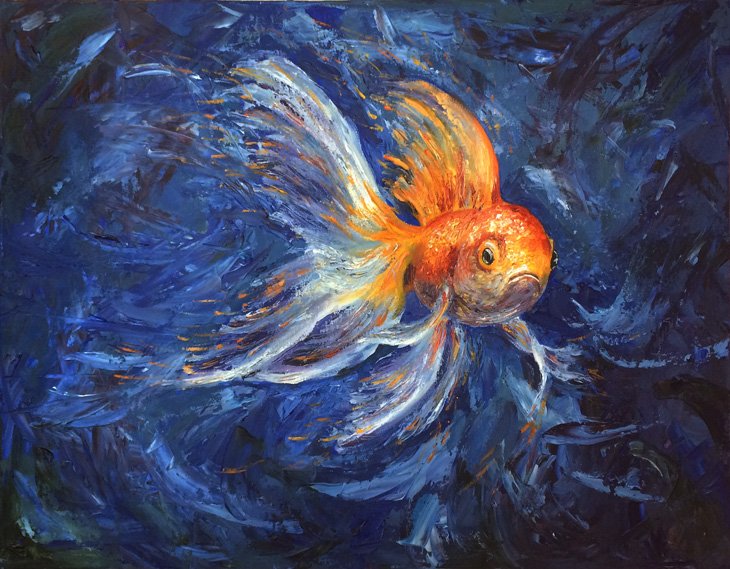 Золотая рыбка живопись маслом