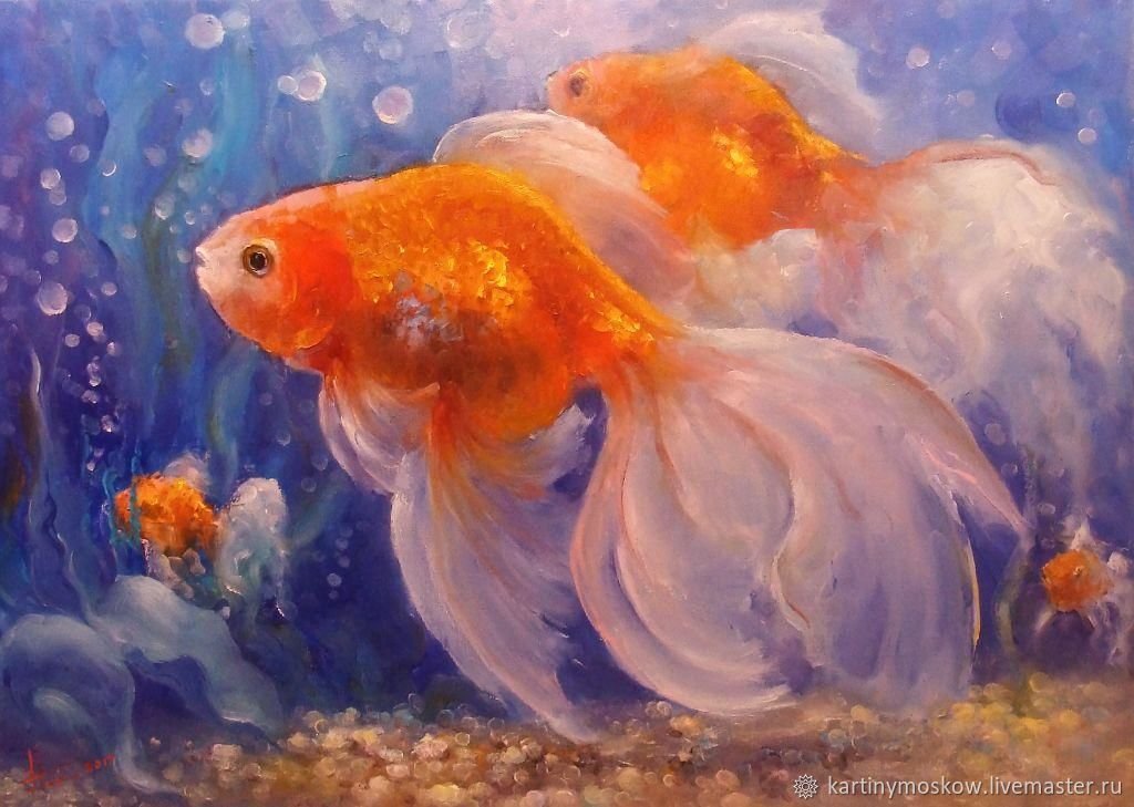![Золотая рыбка картина маслом]()