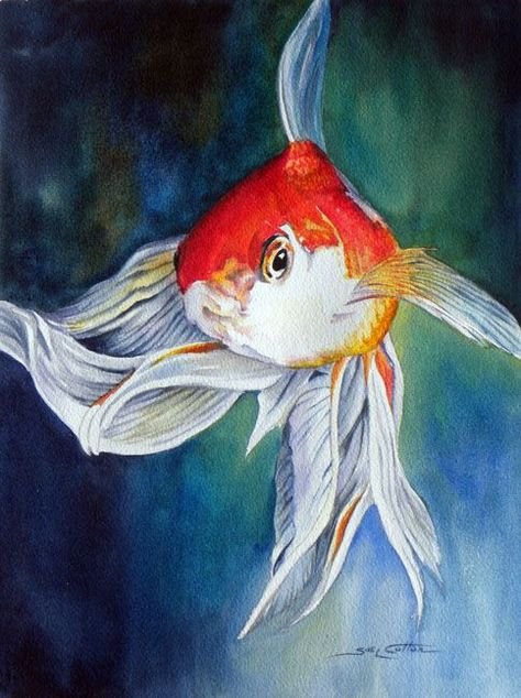 ![Золотая рыбка акварель]()