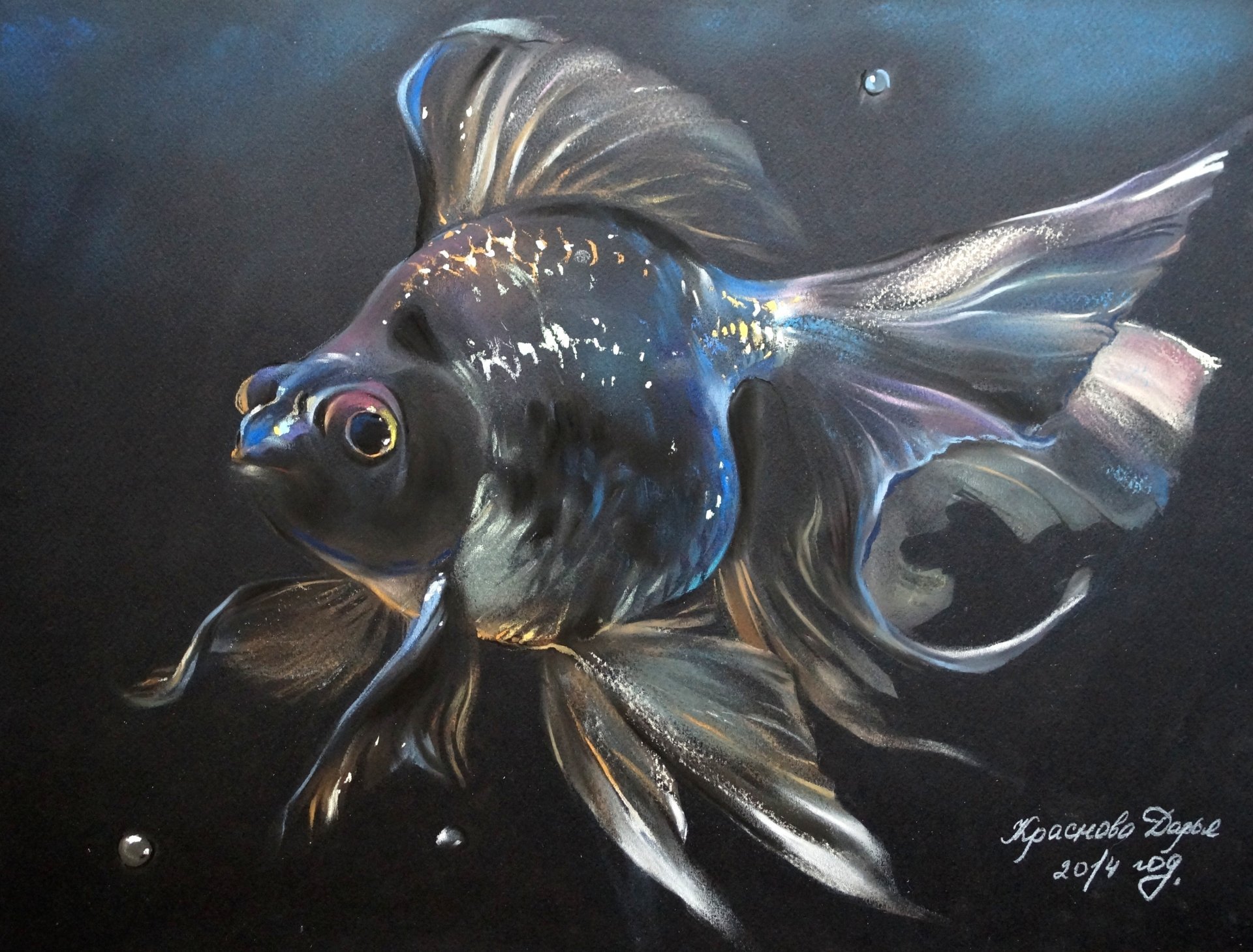 ![Золотая рыбка пастелью]()