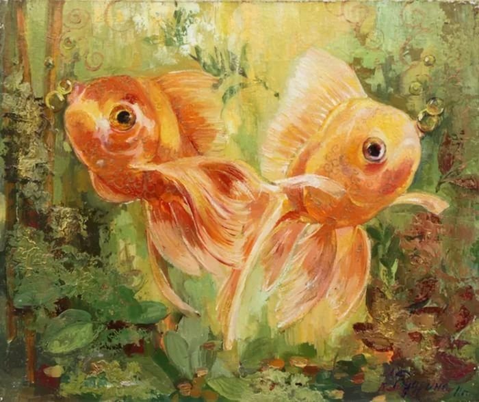 ![Золотая рыбка живопись маслом]()