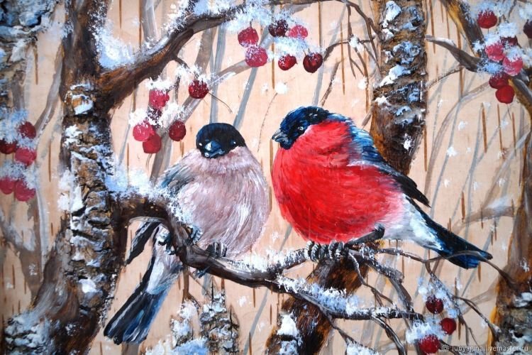 ![Снегири на ветке живопись]()