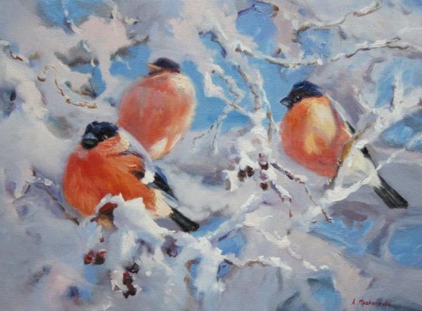 ![Снегири маслом Мария Павлова]()