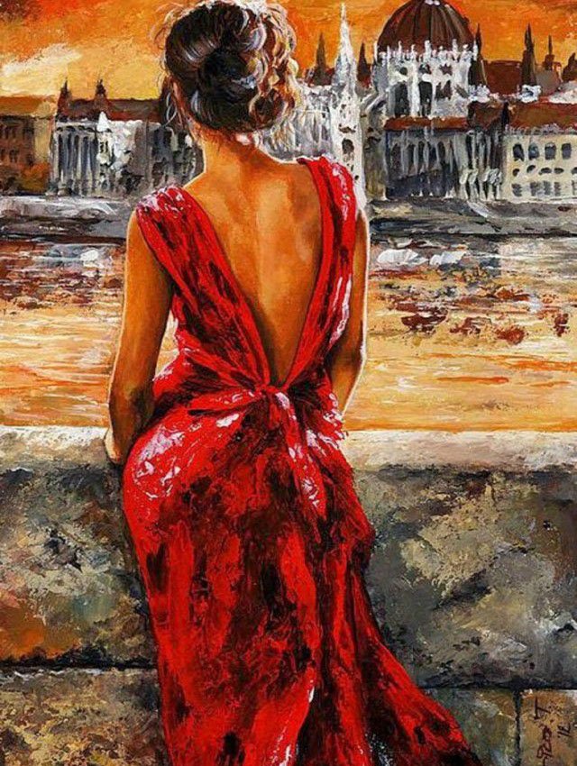 ![Женщина в Красном платье живопись]()