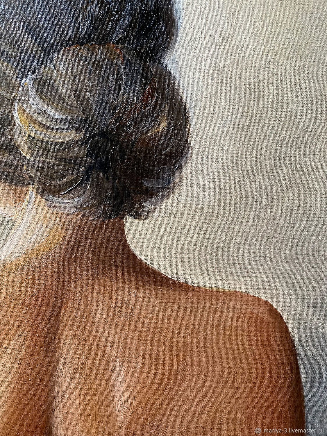 Девушка со спины - это захватывающий рисунок, выполненный масляными красками. В этом произведении искусства художник использовал свою мастерскую технику, чтобы передать красоту и изящество женской фигуры. Картина заставляет зрителя сосредоточиться на деталях, таких как изгибы спины и волосы девушки, создавая глубину и текстуру. Благодаря ярким и насыщенным цветам масел, рисунок оживает перед нами, вызывая чувство эмоций и призывая нас заглянуть во внутренний мир этой таинственной и прекрасной женщины.
