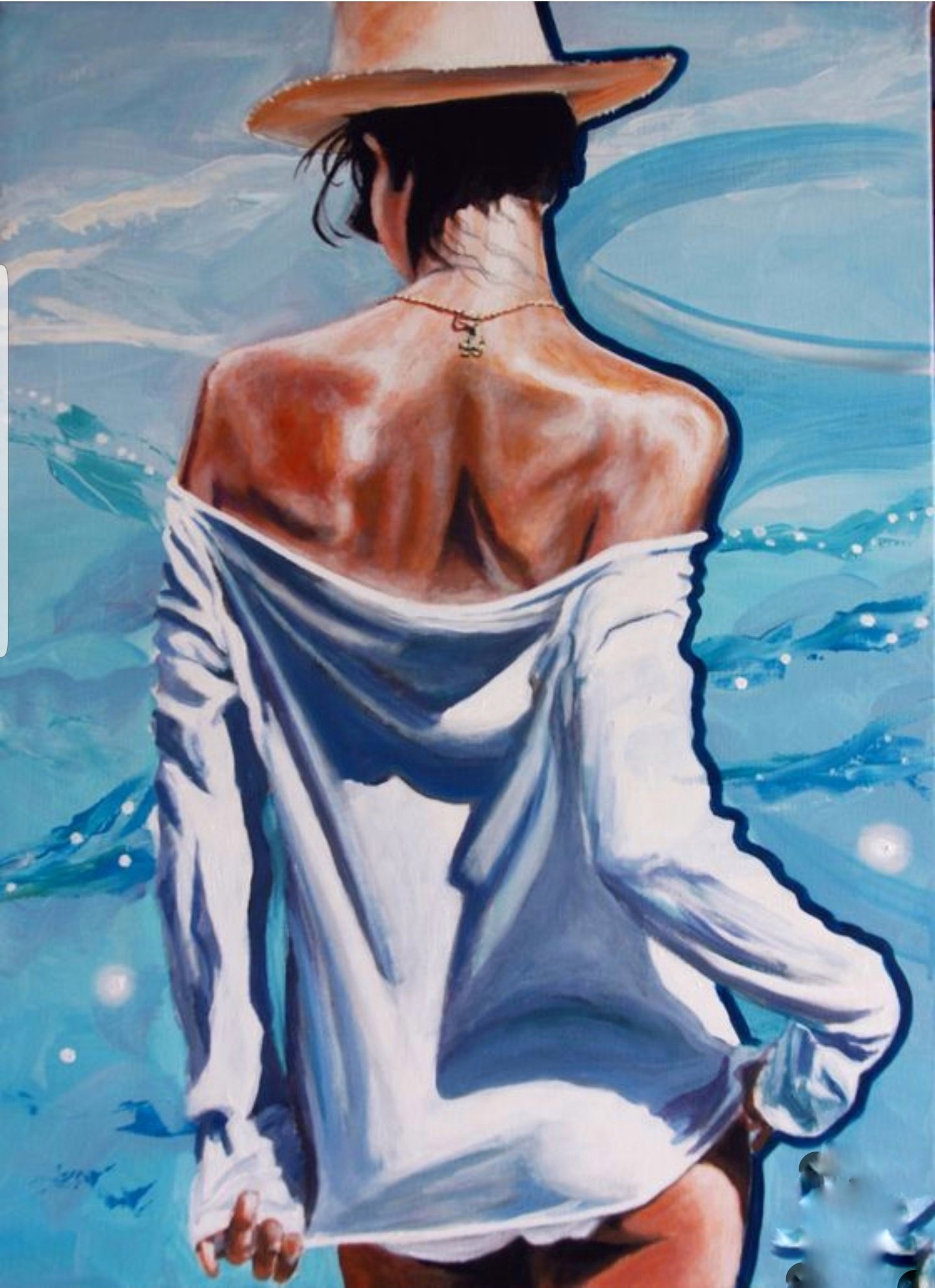 ![Девушка и море живопись]()
