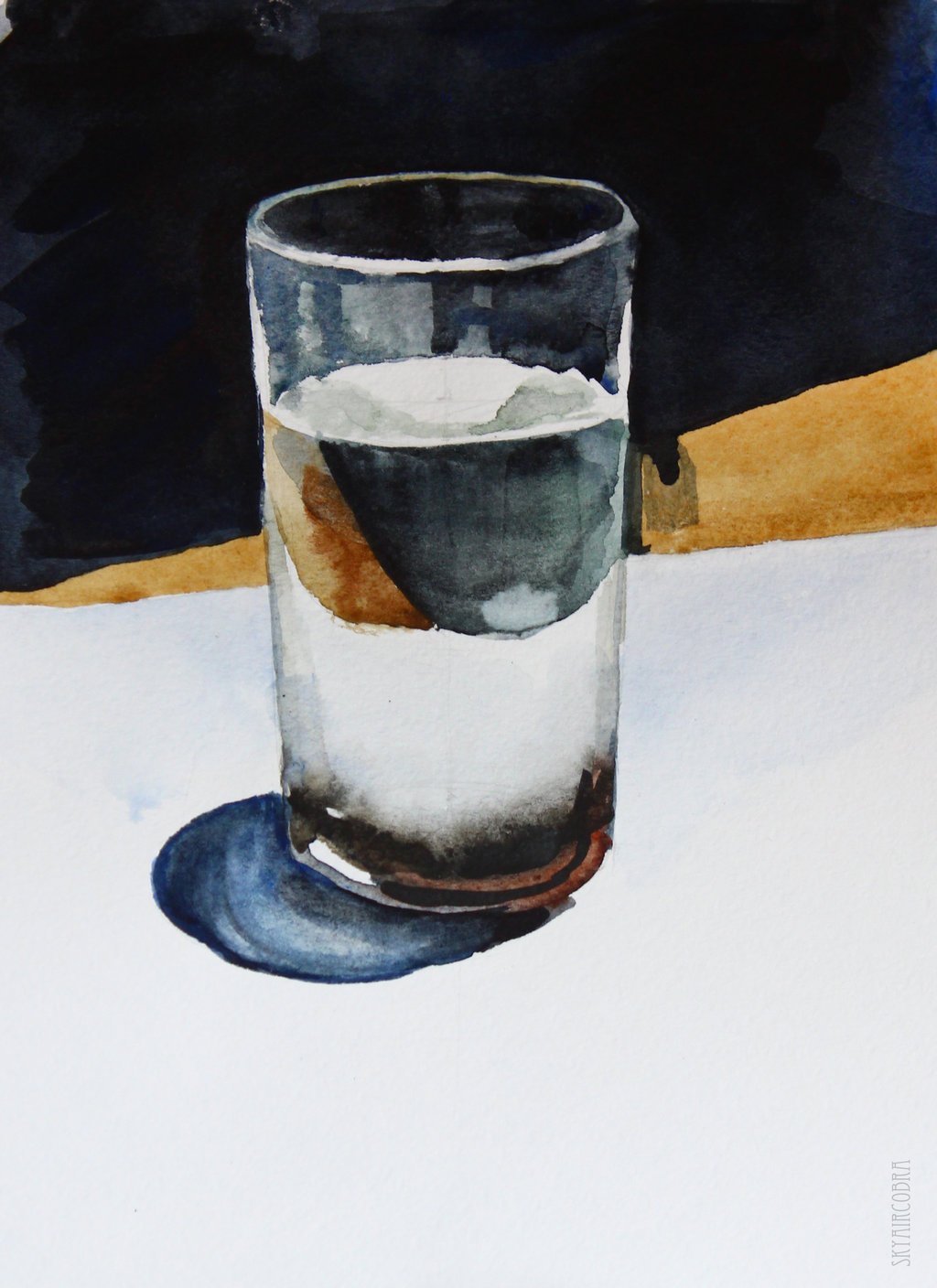 Стакан с водой акварелью